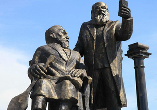 Monumento fica na cidade Ust-Kamenogorsk, no Cazaquistão. Obra homenageava escritor Abay Kunanbayev e cientista Yevgeny Mikhaelis.