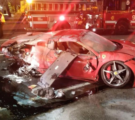 Uma Ferrari alugada ficou destruída após um acidente em Chicago, nos Estados Unidos, na madrugada deste sábado. Entre meia-noite e 1h da madrugada, no horário local, o carro capotou em uma curva às margens do Lago Michigan, cerca de duas horas após ter sido alugada. Em seguida, pegou fogo.