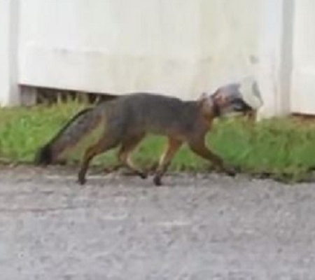 O filhote foi levado até a garagem da mulher, onde ela e o marido tentaram libertá-lo. Segundo Love, a raposa estava calma e não parecia estar machucada. A dificuldade foi passar as orelhas do animal pelo recipiente de maionese, que pesava 400 gramas.