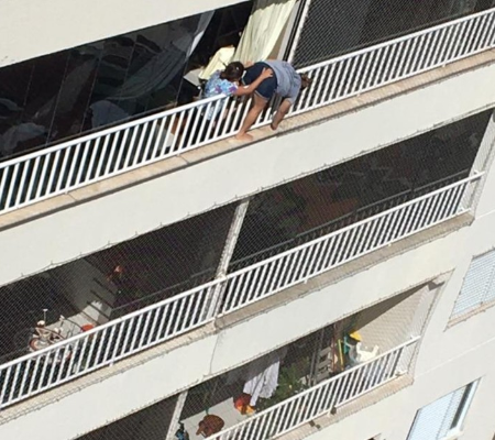 Uma mulher foi vista com metade do corpo para fora da sacada em um prédio do Setor Leste Vila Nova, em Goiânia. Uma moradora do prédio ao lado viu quando a vizinha parecia limpar ou arrumar alguma coisa no local, enquanto era segurada, pela calça, por outra mulher, na manhã de quinta-feira (28). As informações são do G1.