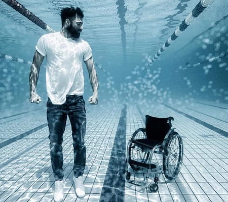Uma poderosa fotografia que mostra um homem flutuando de pé na água ao lado de uma cadeira de rodas voltou a viralizar nas redes sociais. As informações são do Razões para Acreditar.