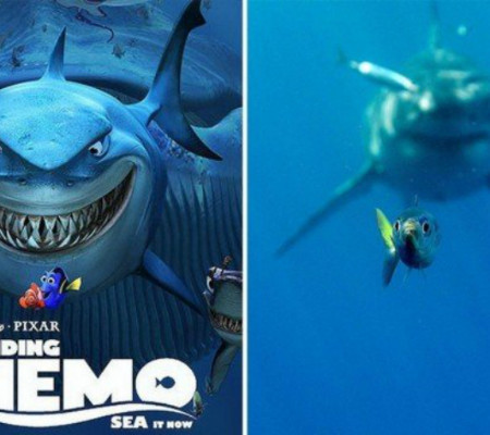 O registro foi comparado ao pôster do desenho "Procurando Nemo". Na cena, Marlin e Dory são assediados por um gigantesco tubarão-branco.