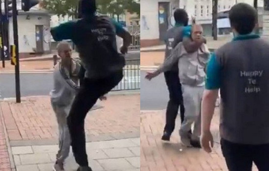 O episódio começou dentro da loja. Um outro funcionário abordou o suspeito de furto e o derrubou no chão. Um colega de trabalho então surgiu em cena e começou a retirar o homem do establecimento.
