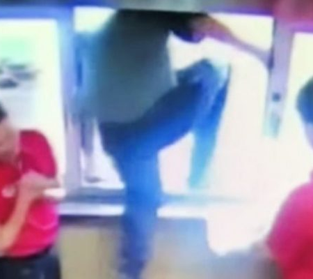 O salto desesperado do funcionário pela janela foi capturado por uma câmera de vigilância, e desde então tem circulado na internet.