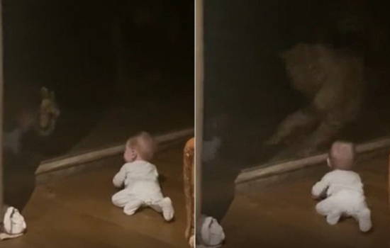 Guepardo parte para cima de bebê, mas colide com vidro reforçado; veja!