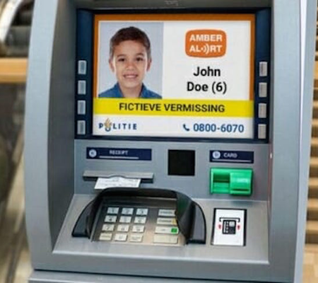 Para ajudar na dor maior de procurar seus filhos, a Holanda se tornou o primeiro país a disponibilizar a imagem de crianças desaparecidasem caixas eletrônicos, exibidas durante as transações financeiras realizadas nos caixas. A inovação teve início no mês de maio, em mais de 300 caixas ligados ao fabricante de sistemas bancários Inc2Retail. As imagens são dispostas como protetores de telas.