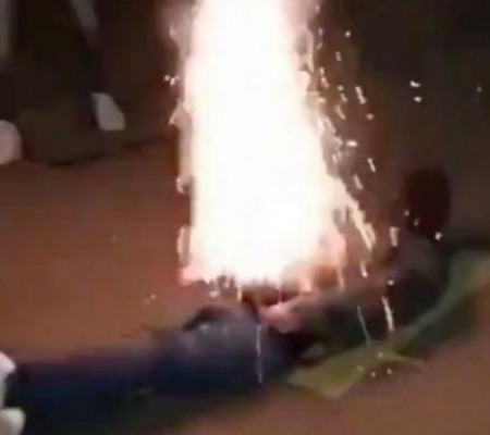 Na filmagem, um rapaz não identificado resolve soltar fogos de artifício de uma maneira diferente. Ele se deita no chão, abaixa as calças e coloca o item em suas nádegas. Outro homem, que aparece no fundo da imagem, se aproxima e acende o explosivo, que dispara de forma violenta para baixo, o que deixa o 'brincalhão' em chamas.