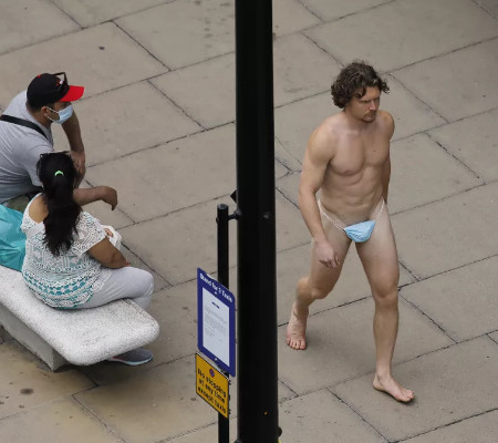 Um homem foi flagrado nesta sexta-feira (24) caminhando nu pela Oxford Street, tradicional rua de lojas em Londres, capital do Reino Unido. Ele usava apenas uma máscara nas partes íntimas, mas o rosto continuava descoberto.