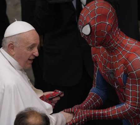 Homem-Aranha assiste missa no Vaticano com Papa Francisco