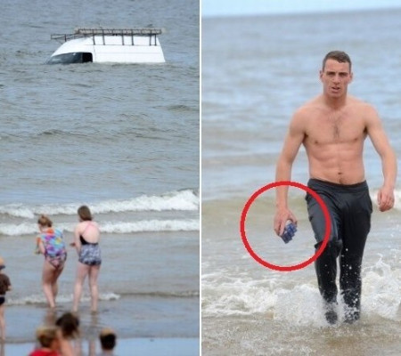 Um misterioso homem conseguiu nadar até o veículo e retirar cigarros. O Daily Star ainda afirma que ele chegou a registrar a façanha com uma selfie.