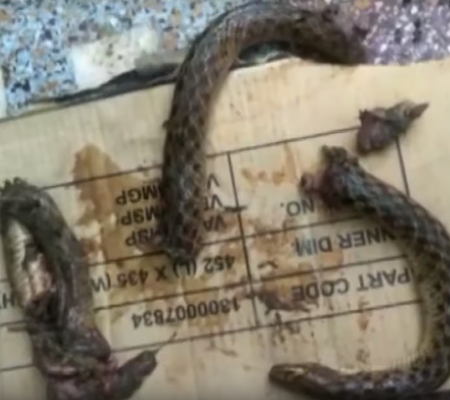 Um homem dilacerou uma cobra a mordidas após ser picado pelo animal no estado de Uttar Pradesh, na Índia. Raj Kumar estava bebendo em casa quando uma cobra o mordeu, causando muita dor. Como forma de se vingar, o homem mordeu a cobra com os dentes, partindo-a em pedaços.