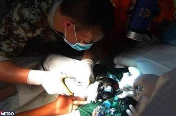 Os bombeiros e os médicos conseguiram retirar o membro do idoso após quatro horas de operação.