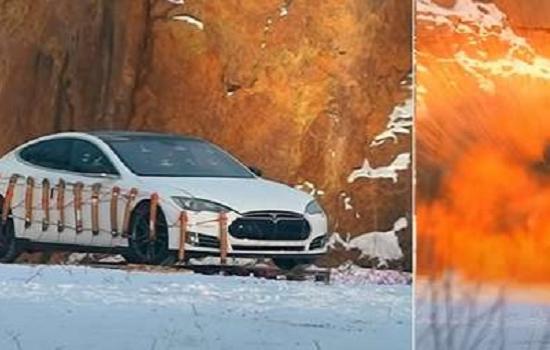 Mais de 30 quilos de dinamites, grudados na lateral do carro, foram utilizados e deram conta do recado. Mal dá para ver detalhes da explosão de tão potente que foi. No final, o dono do carro não pareceu nada arrependido. "Nunca me diverti tanto com meu Tesla", brincou.