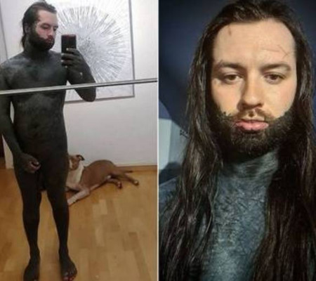 Um homem gastou o equivalente a R$ 60 mil para tatuar quase todo o corpo de tinta preta menos o rosto e as costas. O morador de Chur, na Suíça, pretende agora remover os mamilos. As informações são do Extra.