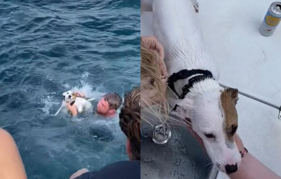 Naquele instante, um dos homens que estava no barco não pensou duas vezes e se jogou nas águas para salvar o cãozinho da raça jack russell terrier. Felizmente, cachorros dessa raça são ótimos nadadores, mas não se sabe quanto tempo o animal ficou nadando em alto mar.