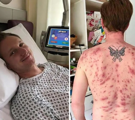 Alguns desses ovos ficam dentro do corpo, onde são atacados pelo sistema imunológico, como ocorreu com James. Se a doença não for tratada, pode ter consequências graves. O inglês foi medicado com praziquantel, um anti-helmíntico antiparasitário que teve como efeito colateral as erupções cutâneas vistas nas fotos.