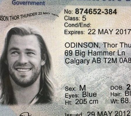 Um canadense tentou comprar maconha pela internet, mas foi impedido por usar um nome um tanto quanto conhecido: o do super herói Thor. O homem criou um documento falso e usou até a foto de Chris Hemsworth, ator que interpreta o personagem. No Canadá , é permitido comprar maconha desde que o consumidor tenha cidadania canadense e comprove que tem mais de 18 anos. No Twitter, o perfil @cottoncandaddy publicou as imagens do documento utilizado pelo comprador e viralizou. "Minha irmã trabalha em uma loja que vende maconha e eu estou perdendo a cabeça", escreveu. No documento, o canadense utilizou o nome Thor Thunder Odinson, colocou características do super herói, como olhos azuis e cabelos loiros e escreveu que teria 68 kg e 2,05 de altura. Como endereço, " Thor " utilizou a rua Big Hammer, que significa grande martelo.