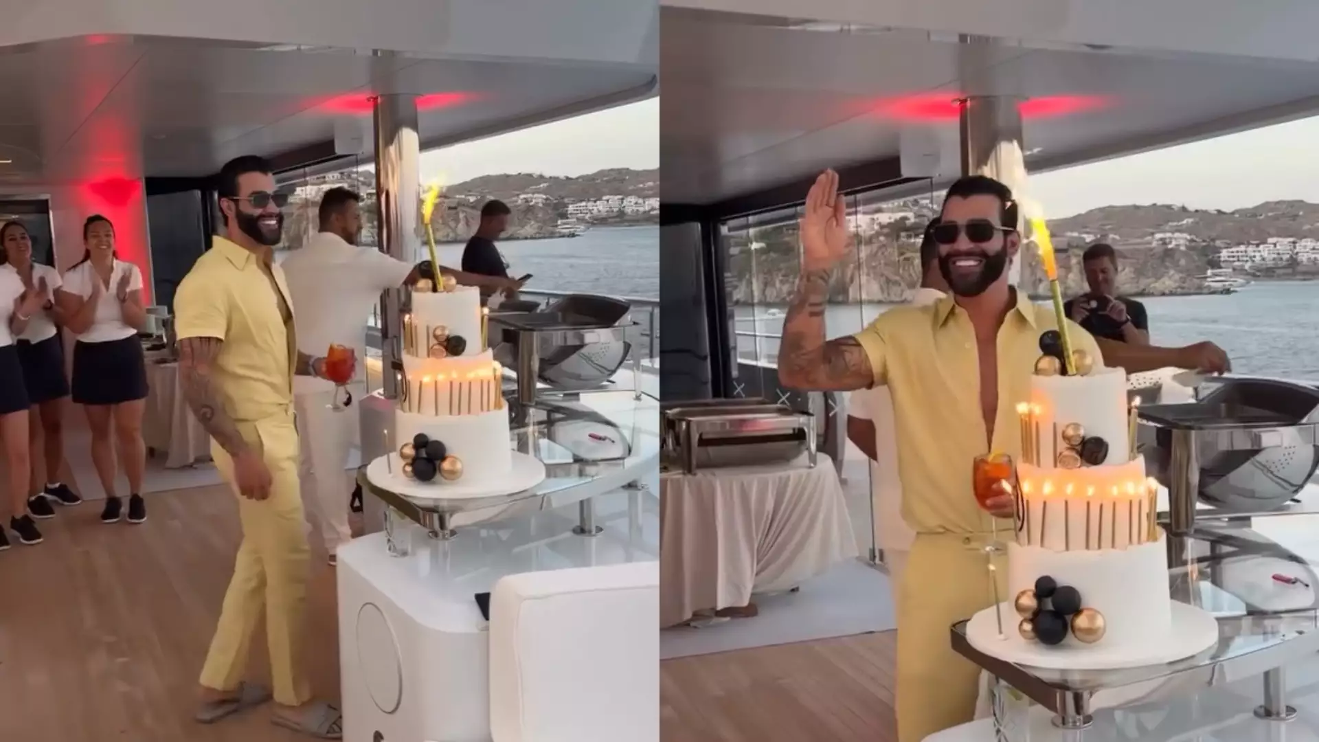 "Bebê" - É assim que os amigos chamam carinhosamente Gusttavo Lima, o maior cachê do Brasil. E "Papai" é assim que ele se refere a ele. No dia 3 de setembro, o sertanejo do sucesso "Balada" completou 35 anos de idade, e claro, em grande estilo. Gusttavo alugou um super iate de cinco andares na Grécia , com diárias de R$ 1 milhão e para venda, R$ 1 bilhão. E em alto mar, ele fez seu "Tcherere tchê tchê" até o sol raiar. E ele reuniu amigos íntimos e familiares para a festa, toda por conta dele, como ele falou no discurso.