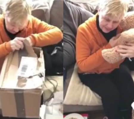 Idosa chora após ganhar urso com gravação da risada do marido falecido