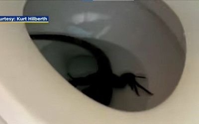 Kurt Hilberth, que mora com a família na Flórida, contou que foi ao banheiro escovar os dentes quando percebeu que um animal dos grandes usava o vaso como morada.