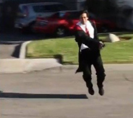 O truque é simples. Obviamente, Zach não estava voando; ele estava se movimentando com ajuda de um skate e segurando uma placa com uma perna postiça que ele editou digitalmente: