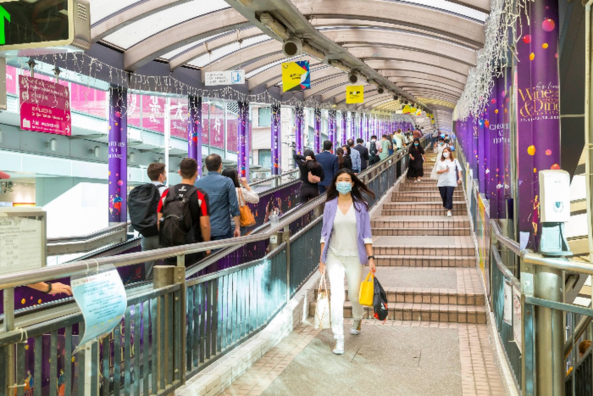 No total, de acordo com o Departamento de Transportes de Hong Kong, são 800 metros de comprimento reversíveis de sentido único. Ou seja, o mecanismo não é formado por apenas uma longa escada, permitindo que os cerca de 99 mil pedestres que transitam por ela diariamente tenham acesso a entradas e saídas em vários pontos.