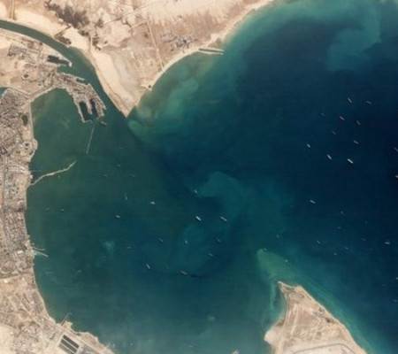 Enquanto avança a operação gigantesca para mover o Ever Given, cargueiro encalhado desde terça-feira (23) no Canal de Suez, centenas de navios se amontoam em ambos os lados da passagem, esperando sua vez de atravessar.