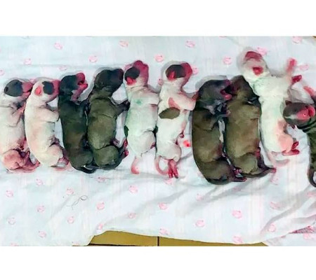 O ultrassom mostrou que seriam muitos filhotes, e a veterinária estimou em 10, 11, mas na hora do parto, não parava de sair cãezinhos. Foi necessário fazer uma cesariana e o procedimento levou cerca de duas horas.