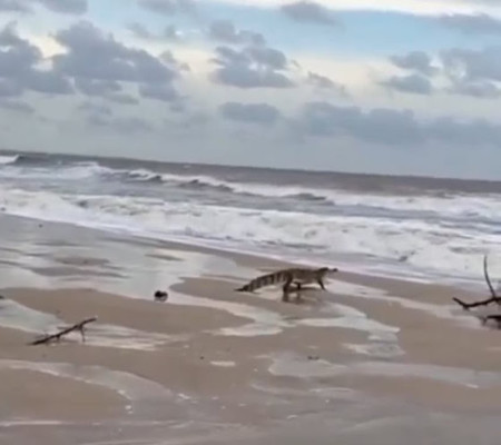 A especulação é de que a maré alta teria banhado a região de mangues (rio) e trazido o jacaré para a área de praia