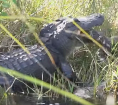 A píton, por sua vez, foi totalmente dominada e não teve ao menos uma chance de escapar das grandes mandíbulas do jacaré, que tranquilamente abocanhou a serpente como se fosse um pequeno petisco.