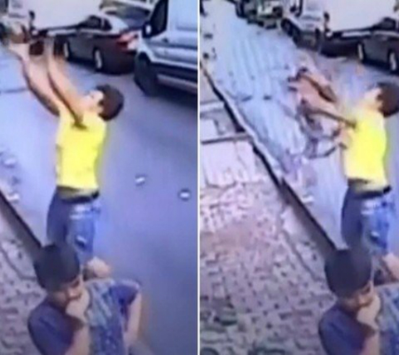 Feuzi Zabaat, de 17 anos, estava caminhando por uma rua de Istambul (Turquia) quando percebeu que uma menina havia subido na janela de um apartamento no segundo andar de prédio. Ciente do perigo que a cena representava, o adolescente argelino resolveu parar. E o seu gesto salvou a criança. As informações são do Extra.