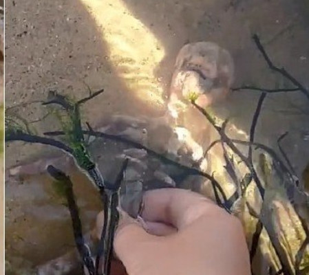Na legenda do vídeo, o rapaz questiona: "Que peixe é esse?", sugerindo que seria uma sereia.