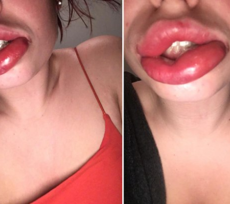 No dia seguinte, ela foi avaliada por médicos. No entanto, a dor piorou à noite e a jovem foi levada às pressas ao hospital novamente. No local, foi constatado que ela estava com uma infecção nos lábios e precisou passar por cirurgia. “Eu estava chorando porque estava com muita dor. Meus lábios pareciam linguiças , estavam machucados e ardiam”, diz.