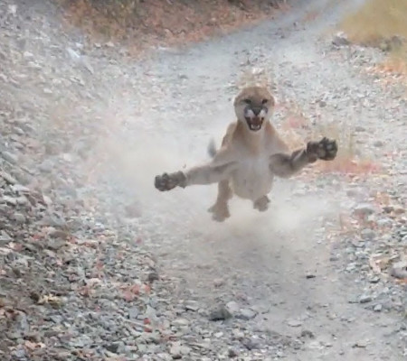 A puma simplesmente continuou atacando, e o moço se desesperou: “Não! Não! Vá embora! Por favor, vá embora!”. Continuando a filmagem, mas sem saber o que dizer, ele fala: “Qual é, cara. Eu não estou a fim de morrer hoje!”.
