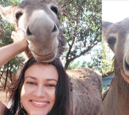 É que o xodó de Jacqueline é o jumento Django, um animal dócil e bastante conhecido nas redes sociais por exibir um sorriso que facilmente conquista as pessoas.