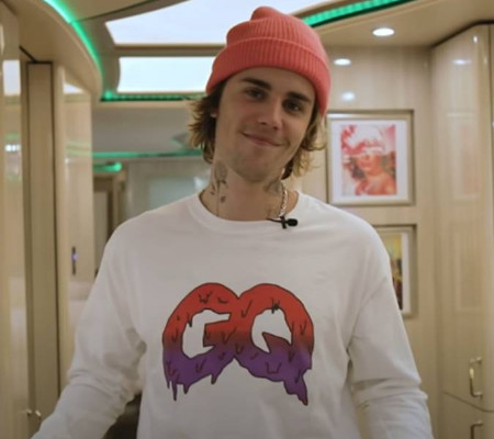 Trata-se do ônibus de luxo que Bieber costuma usar em suas turnês. No vídeo, o artista apresenta cada cantinho que usa no trabalho e no lazer.