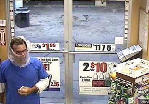 Ladrão de carteirinha? Provavelmente não. Um homem está sendo acusado de roubar dinheiro de uma loja de conveniência em Illinois (EUA). Só que o maluco entrou no local usando um saco transparente na cabeça, achando que conseguiria esconder sua identidade.