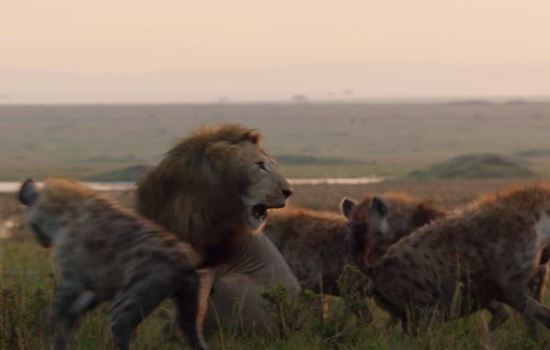 O animal passa por um curso d'água e o perigo lentamente se aproxima. As hienas se juntam e fazem um cerco extenso ao redor do leão, que pressente o perigo e lida com a situação com rugidos e giros, para tentar demonstrar superioridade.