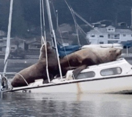 Em dezembro de 2019, o empresário Josh Philips capturou algo insólito: a imagem de dois leões-marinhos gigantes estirados em cima de um barco pequeno. Josh pescava no momento e percebeu que a embarcação estava quase afundando.