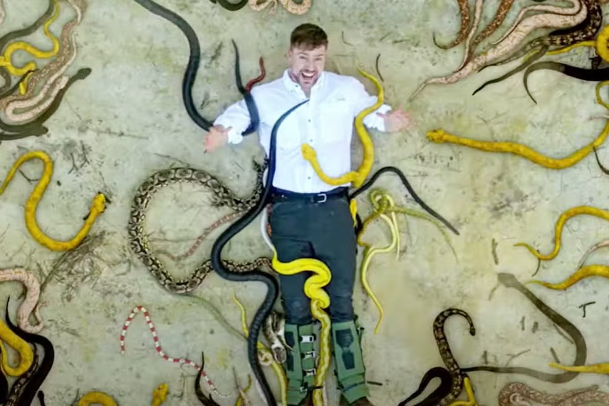 MrBeast classificou a Ilha das Cobras como o local mais mortal do planeta, seguido por uma região da floresta amazônica no Peru, uma estrada na Bolívia, uma cachoeira congelada na Europa e um safári africano.
