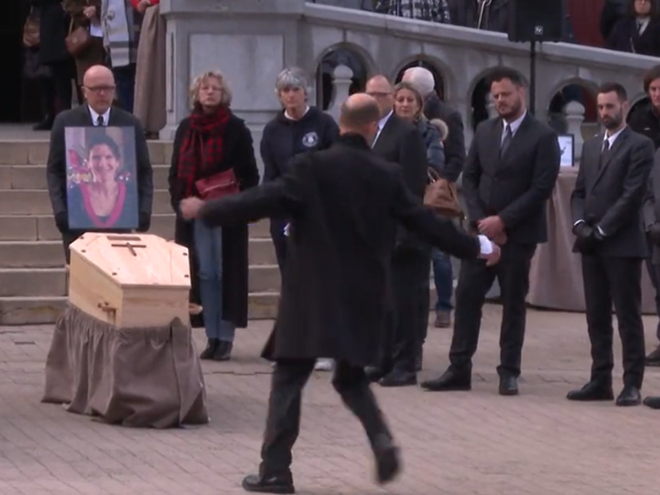A professora de Espanhol, Agnes Lassalle, de 50 anos, morta a facadas no dia 22 de fevereiro, teve uma surpresa no seu velório, na última sexta-feira (03). Seu marido dançou em frente ao caixão e logo depois os amigos seguiram dançando. Vídeo abaixo.