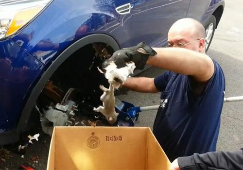 Ouvindo bastante barulho vindo da caixa de roda o homem consegue retirar três roedores que pareciam bastante assustados, mas sem ferimentos.