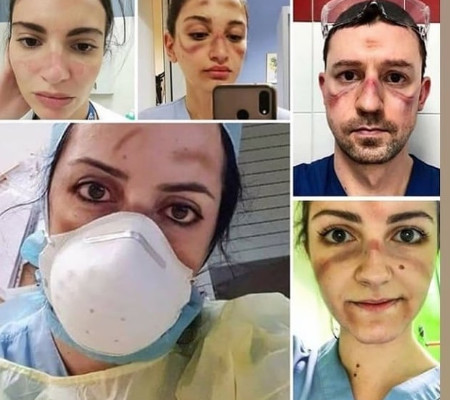 Homenageados com salva de palmas ao redor do mundo, profissionais da área de saúde que estão na primeira fila contra o coronavírus estão usando as redes sociais para mostrar como ficam seus rostos devido aos acessórios de proteção contra a COVID-9. As informações são da Revista Marie Claire.
