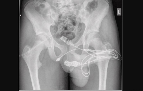 Ainda, segundo o papper, o cabo estava com nós e foi revelado na face proximal da uretra peniana e cortado do restante do cordão. Ambas as pontas do fio foram puxadas com sucesso. Após a cirurgia, o menino recebeu alta no dia seguinte com analgesia simples, antibióticos orais e cateteres suprapúbicos, para a drenagem da urina.