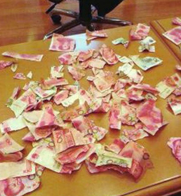 Imagens do dinheiro rasgado foram publicadas no site Weibo, espécie de Twitter chinês.