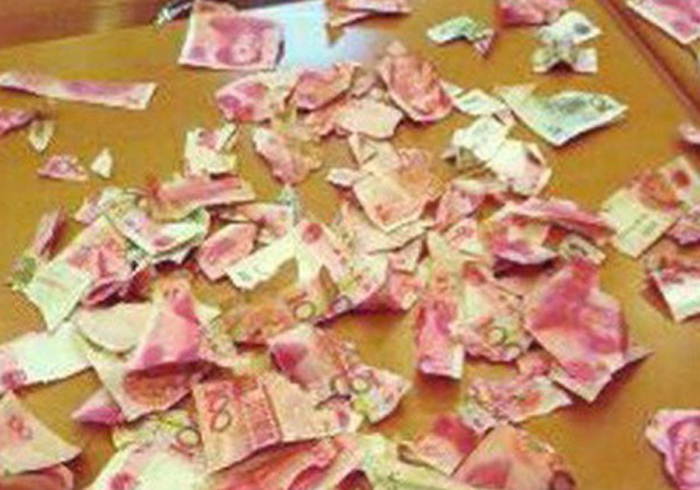 Imagens do dinheiro rasgado foram publicadas no site Weibo, espécie de Twitter chinês.