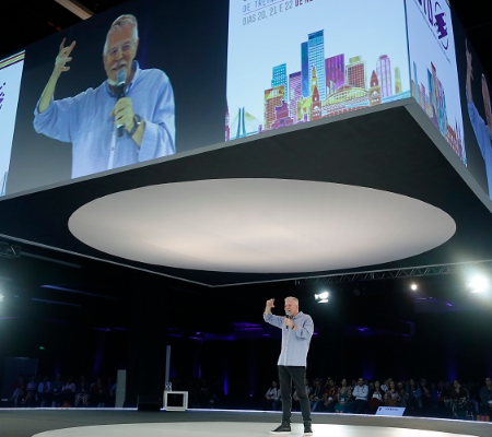 Na tarde desta quinta-feira (21), aconteceu a primeira plenária do dia com o ator, cineasta, escritor, apresentador, dublador, dramaturgo, roteirista e diretor teatral Miguel Falabella. Em pouco mais de uma hora de apresentação, ele trouxe reflexões sobre atitudes, relações interpessoais e a postura que devemos adotar para alcançar sucesso na vida profissional.