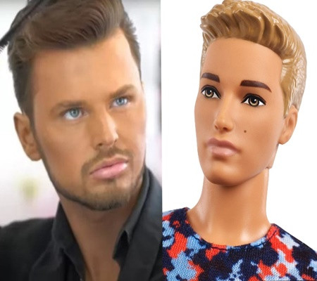 Mas para o modelo Jimmy Featherhouse a mudança foi mais radical. Aos 22 anos, ele decidiu gastar o equivalente a R$ 75 mil em uma cirurgia plástica com a finalidade de ficar igualzinho ao boneco Ken, companheiro da boneca Barbie.