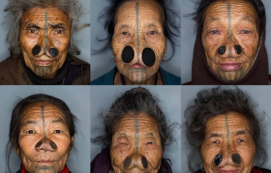 Por meio dos alargadores e de uma tatuagem no rosto (1 linha vertical da testa até o nariz e 5 linhas no queixo) as mulheres Apatani pretendiam se tornar menos atraentes para as outras tribos Arunachal.