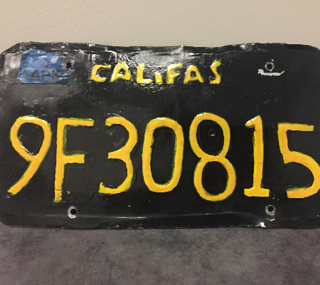 O departamento de polícia do condado de Ventura disse que a placa, no estilo dos anos 1960, tinha números e letras tremidos. Além disso, em vez de "Califórnia", estava escrito "Califas".